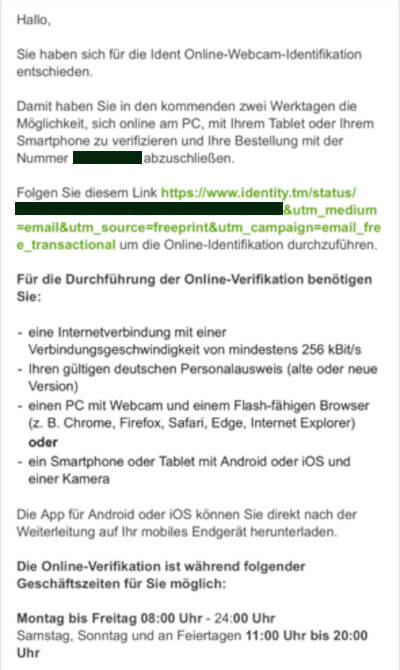 - 8:28 Uhr – Eingang der Bestell-Bestätigungs-E-Mail mit Anleitung für Ident-Check