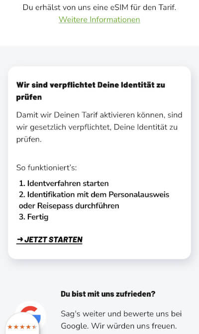 Bereits per E-Mail informierte Klarmobil über den Ident-Check via Identify und deren „Öffnungszeiten“. Letztere waren letztlich falsch, da für die Identifikation über die App gar kein Call-Center Mitarbeiter benötigt wurde und der Prozess damit lobenswerter Weise rund um die Uhr möglich ist.
