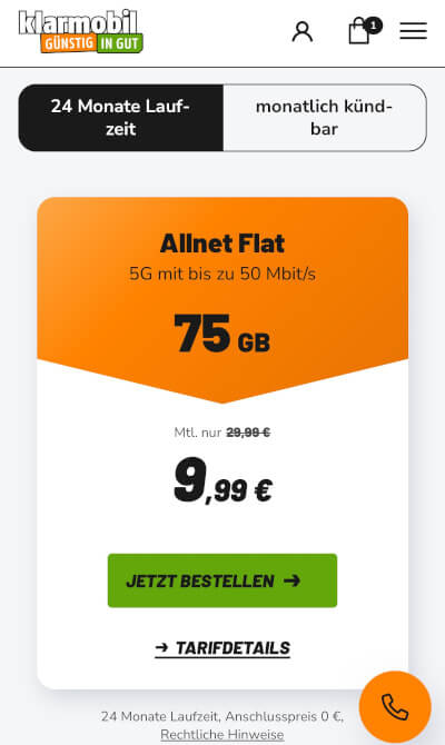 Klarmobil Bestellprozess